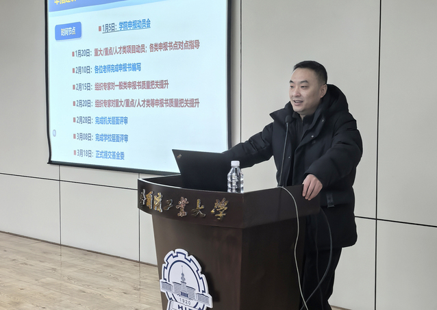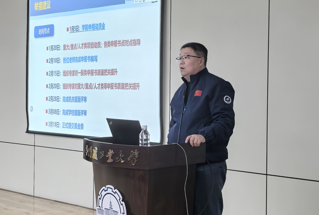 郭继峰针对学院2025年国家自然科学基金申报工作作出具体部署。(苏胜新 文/图)