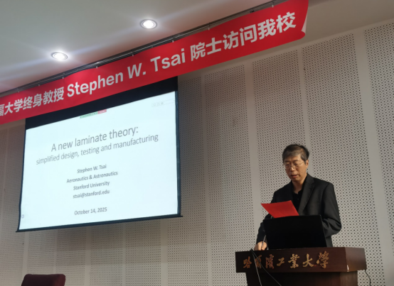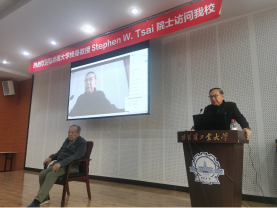 (王兵 文/图)10月16日下午,受皇冠博彩网址 杜善义院士邀请,由皇冠博彩网址 复合材料与结构研究所和国际应用力学中心主办的Stephen W.Tsai教授学术报告会在活动中心227报告厅举办,美国国家工程院院士、斯坦福大学终身教授Stephen W.Tsai教授作主题报告,报告深度介绍了新提出的Double-double理论在简化复合材料层合板设计方面的最新科研成果,从简化理论、试验验证及工艺制造角度阐述了新理论的独特优势。共有近600余人线上线下参会,报告会由中国科学院院士、未来技术学院/卓越工程师学院院长冷劲松教授主持。